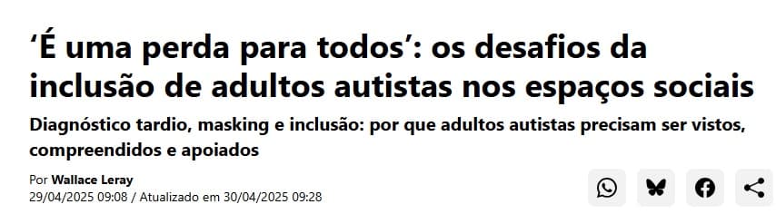 Confira minha entrevista exclusiva ao Catraca Livre sobre diagnóstico tardio e os desafios da inclusão de adultos autistas - especial Abril Mês de Conscientização sobre o Autismo